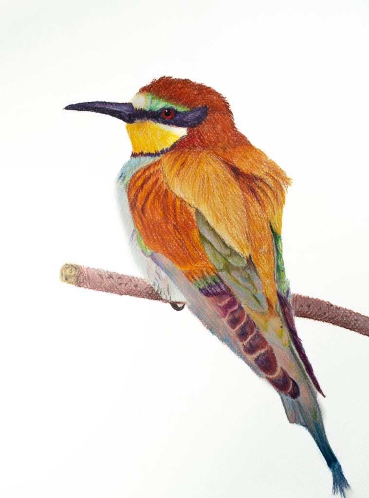 Entre todos los pájaros del bosque, él no canta: desfila. El abéjaruco europeo no vuela, se exhibe. Con su plumaje de colores imposibles —azules celestes, verdes esmeralda y dorados de atardecer—, sabe que es una obra maestra alada.